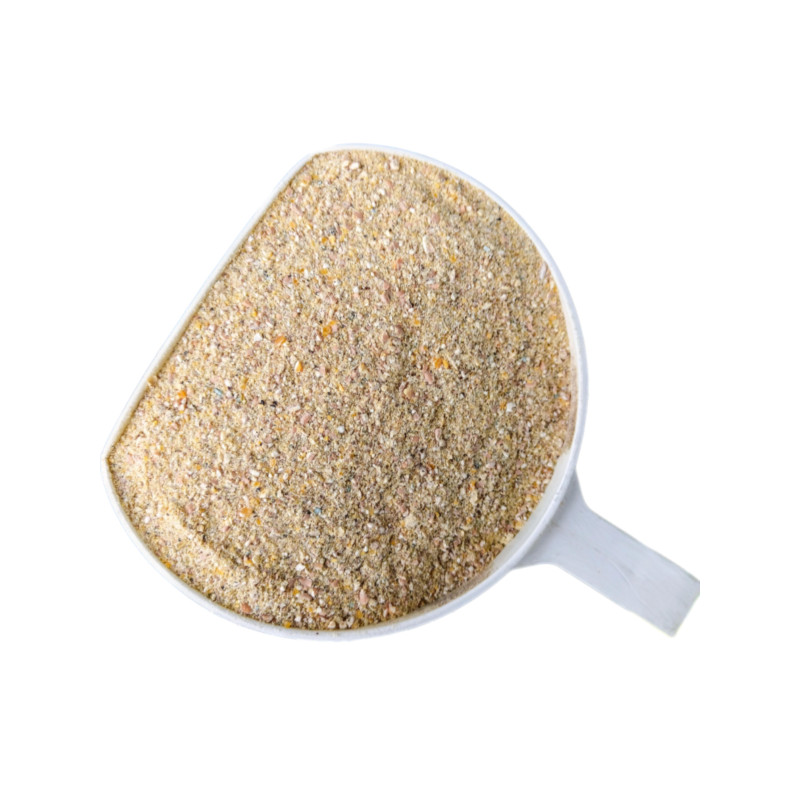Zoženie : pšenica, kukurica, sójový extrahovaný šrot, uhličitan vápenatý.