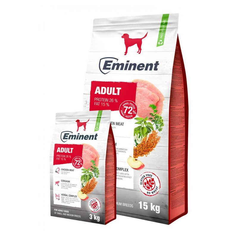 Predstavujeme EMINENT ADULT, láskyplne vyvinuté kompletné bezlepkové krmivo pre dospelé psy malých a stredných plemien. Toto krmivo je zárukou nielen vitality a výbornej kondície, ale aj šťastnejšieho a zdravšieho života vášho štvornohého priateľa.